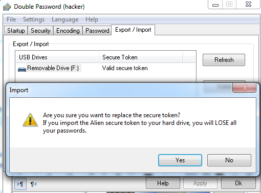Now the last step and the last tab "export/import" where we can see our inserted USB device and which will be shown as valid secure token.now we just need to press "import"